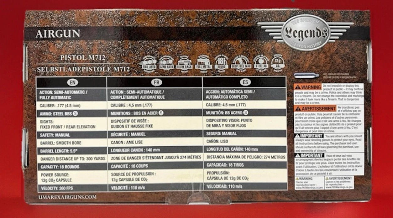 - Powered by a 12-gram CO2 cartridge (CO2 NOT included. To ensure a proper seal and for best performance, Umarex-brand CO2 is recommended.)