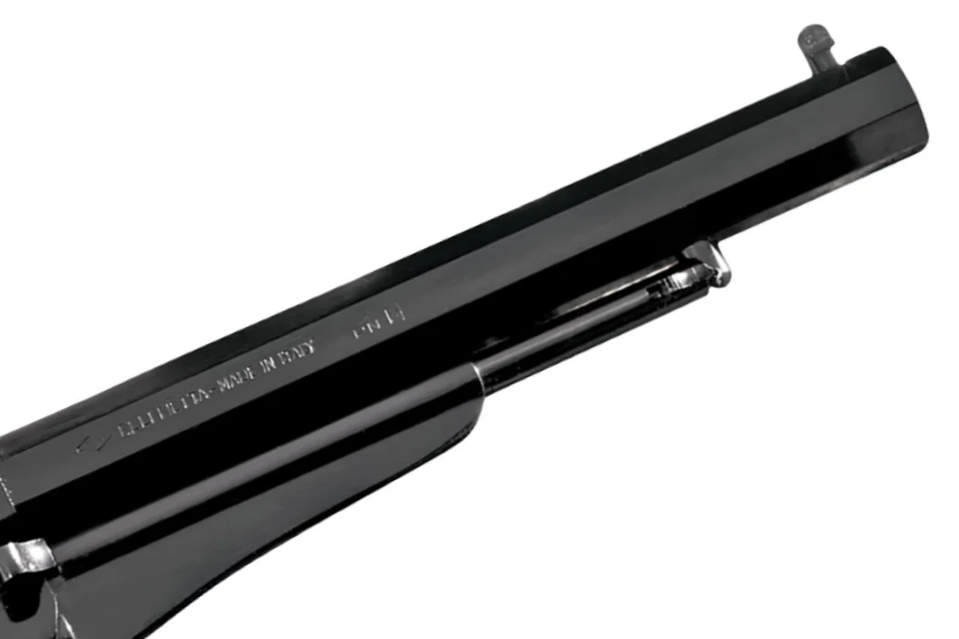 The Pietta™ 1858 Remington Revolver was one of the most popular side arms of the Civil War and was the last of the Remington percussion revolvers to be manufactured. This 1858 revolver pistol features a tapered octagon barrel, steel frame, brass trigger guard, 6-shot cylinder, fixed sights and two-piece walnut grips.